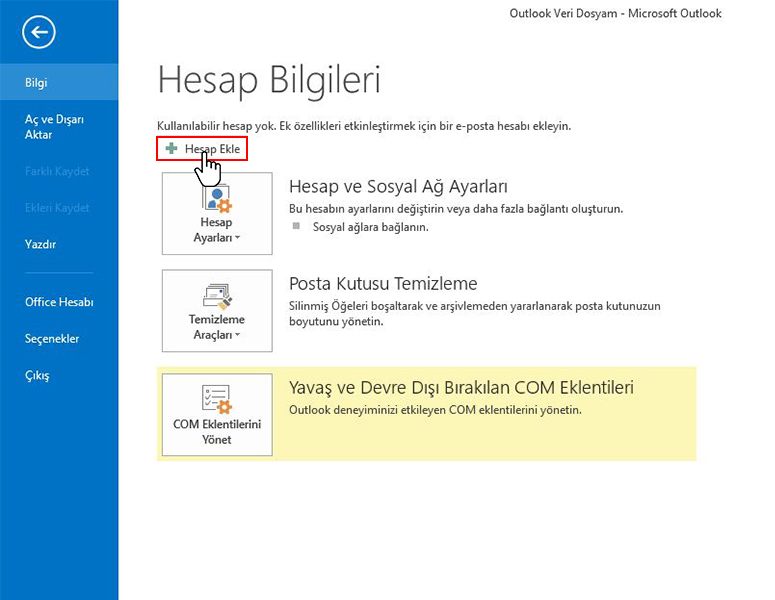 2-) Daha sonra üst taraftaki "Hesap Ekle" butonuna tıklıyoruz.