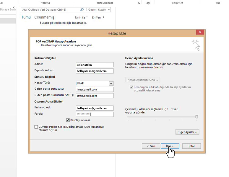 8-) Az önce Diğer Ayarlarımızı yapılandırdık. Şimdi ise "İleri" butonuna tıklıyoruz.